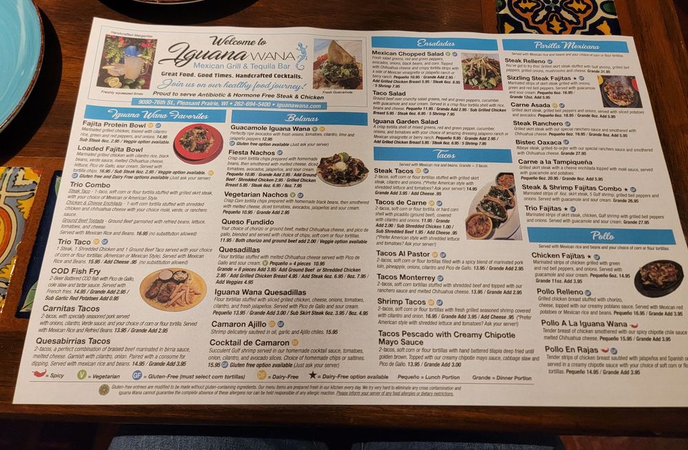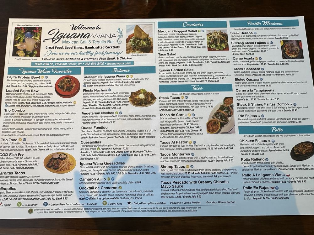 Iguana Wana Mexican Grill and Tequila Bar is a vibrant and inviting spot that offers a range of Mexican dishes and cocktails. Located in Pleasant Prairie, WI, this establishment provides a casual and trendy atmosphere with various amenities like outdoor seating, full bar, and even a drive-thru. Their menu includes tantalizing options like shrimp dishes, nachos, and kids' meals like tacos and burritos. Customers have raved about the flavorful food, attentive service, and lively ambiance. The restaurant also offers a diverse selection of drinks, including margaritas and cocktails. Overall, Iguana Wana Mexican Grill and Tequila Bar provides a satisfying dining experience for those looking to enjoy delicious Mexican cuisine in a fun setting.